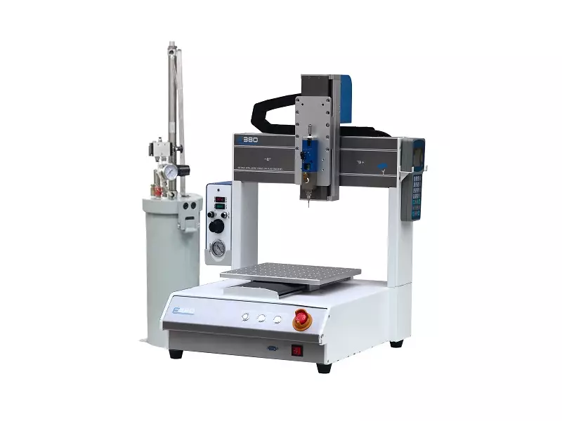 This new E-Series desktop / benchtop / tabletop dispensing robot is the result of careful refinement by our engineers and industrial designers. The body and gantry of this series of dispensing robots are made of one-piece aluminum die-casting. Compared with the dispenser assembled with aluminum profiles on the market, the one-piece aluminum die-casting dispenser will be more precise, durable, steady, and low-maintenance. The machine not only can be easily equipped with different dispensing systems for different glues, we have also optimized the dispensing range without changing the overall machine size. Via smart calculation engineers have increased its dispensing stroke by 300mm to 380mm XY axis, which is more suitable for factories and workshops of all sizes use. By this we reduce the cost of the materials, and reduce the cost of the machine too, customers also have also reduce the operating overhead. This series of machine are in mass production already, stock is available for fast delivery (10 days approx.). With mass production, its cost is lowered and we offer competitive package discount, and further achieve a win-win situation.