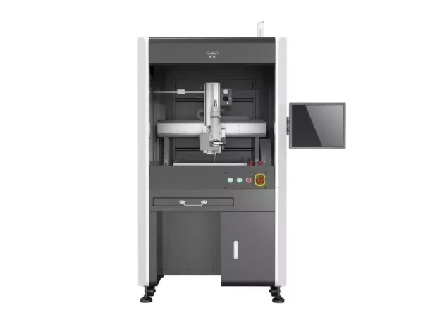 This dispenser is mainly used in the conductive adhesive dispensing process. It is widely used in the equipment modules of 5G communication base stations. Conductive adhesive material is dispensed on the electromagnetic shielding casting cover to achieve electromagnetic shielding and anti-interference. The machine is able to dispensing triangular shielding or D-shape gasket directly.