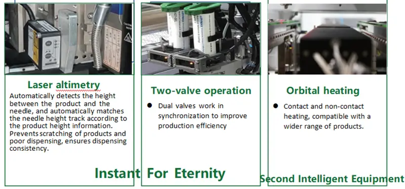 This machine is suitable for UV-packaging, hot melt adhesive dispensing robot bonding, epoxy bottom filling (underfill) and other precision dispensing processes.