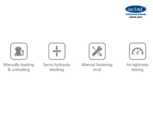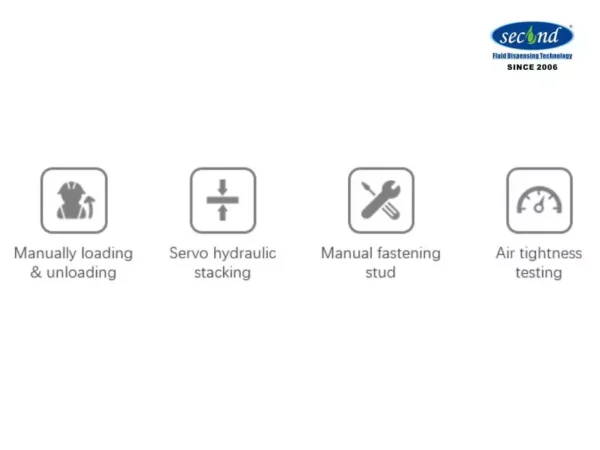 The design of this semi-automatic stacker is to develop a semi-automatic stacking equipment for large-scale PEM hydrogen fuel cell batteries stacking and packaging needs. The stacking of other materials is done manually. The high-precision servo hydraulic pressing system ensures the precise pressure of each stack; manually locks the studs, and uses the differential pressure method to perform multi-directional air tightness tests on the stack.
