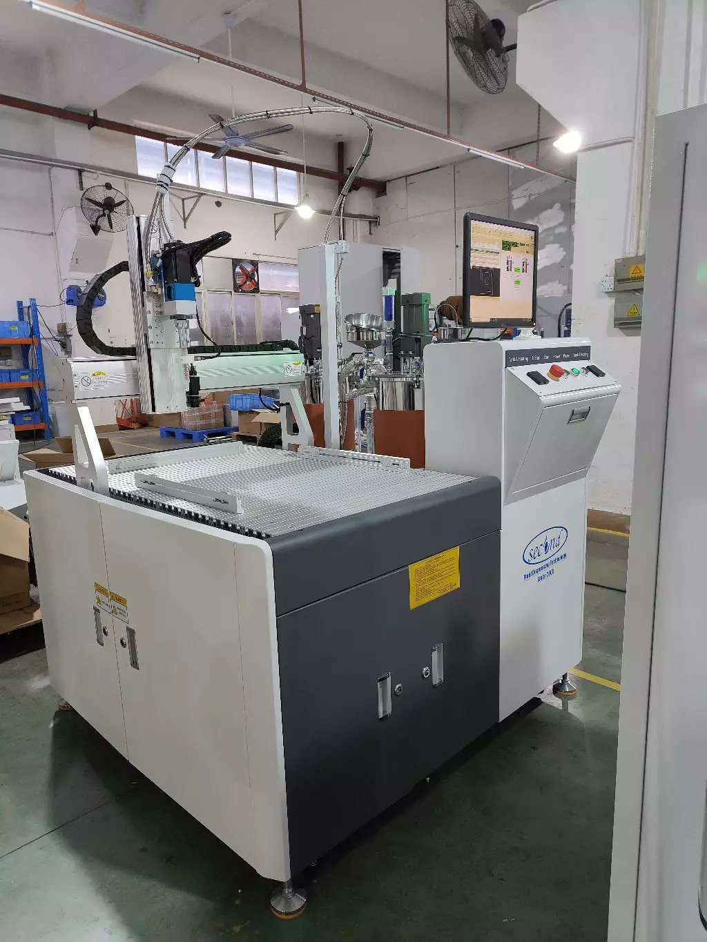 - Compact machine body with 500mmx700x100 XYZ dispensing range.