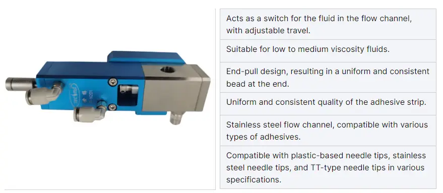 F-H101 suction back glue dispensing valve uses the most advanced micro dispensing technology to achieve extremely high precision dispensing, especially suitable for high viscosity and ultra-high viscosity media. The system can be widely used in a variety of different liquids,