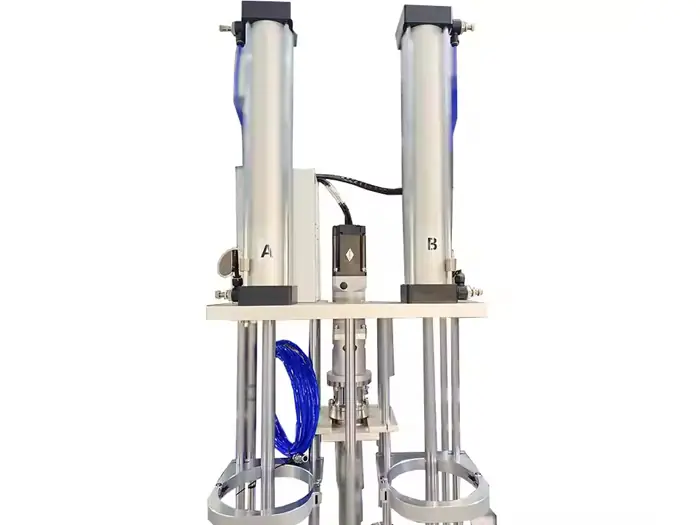 Two parts silicone, resin, epoxy, polyurethean and other fluids with big tanks or barrels of materials.